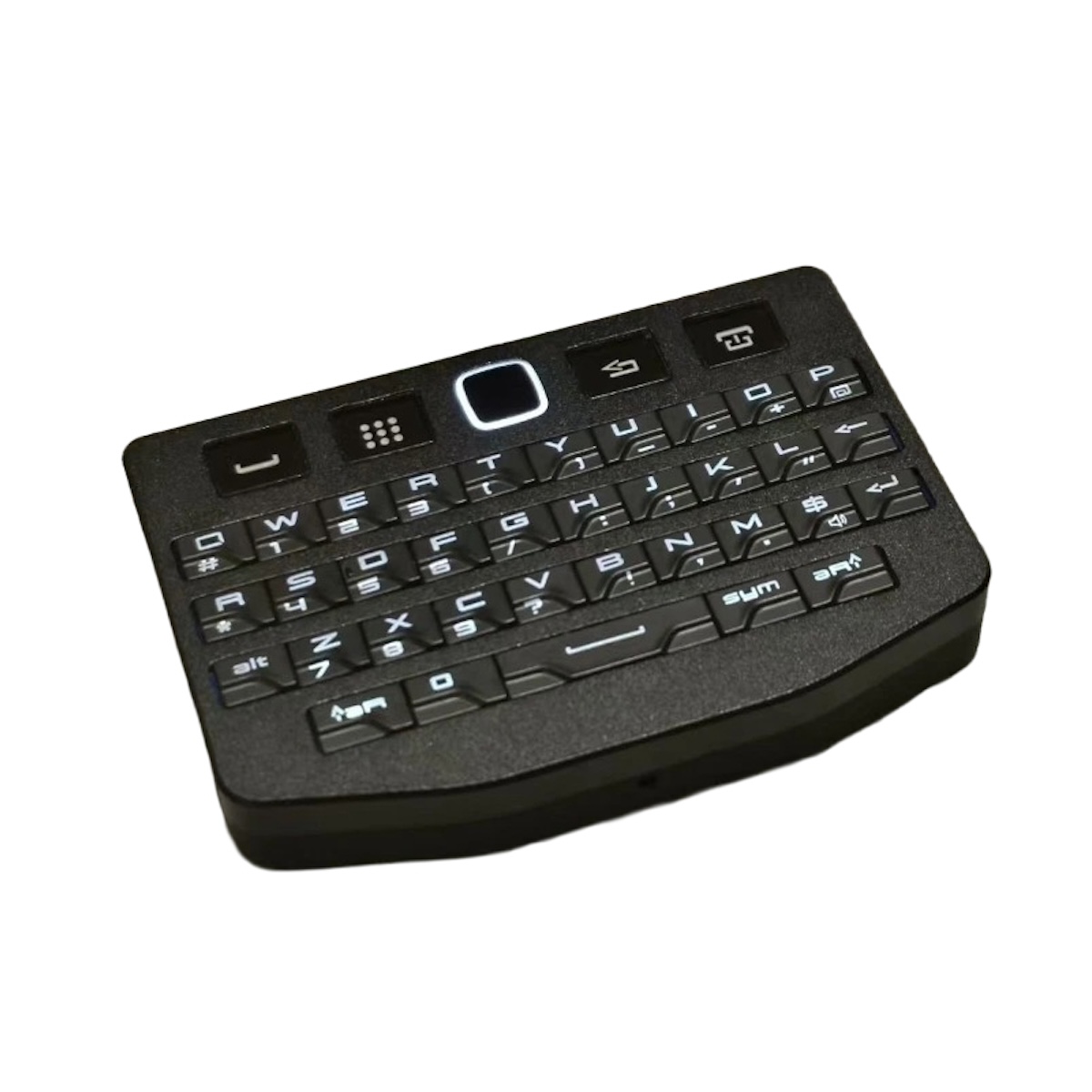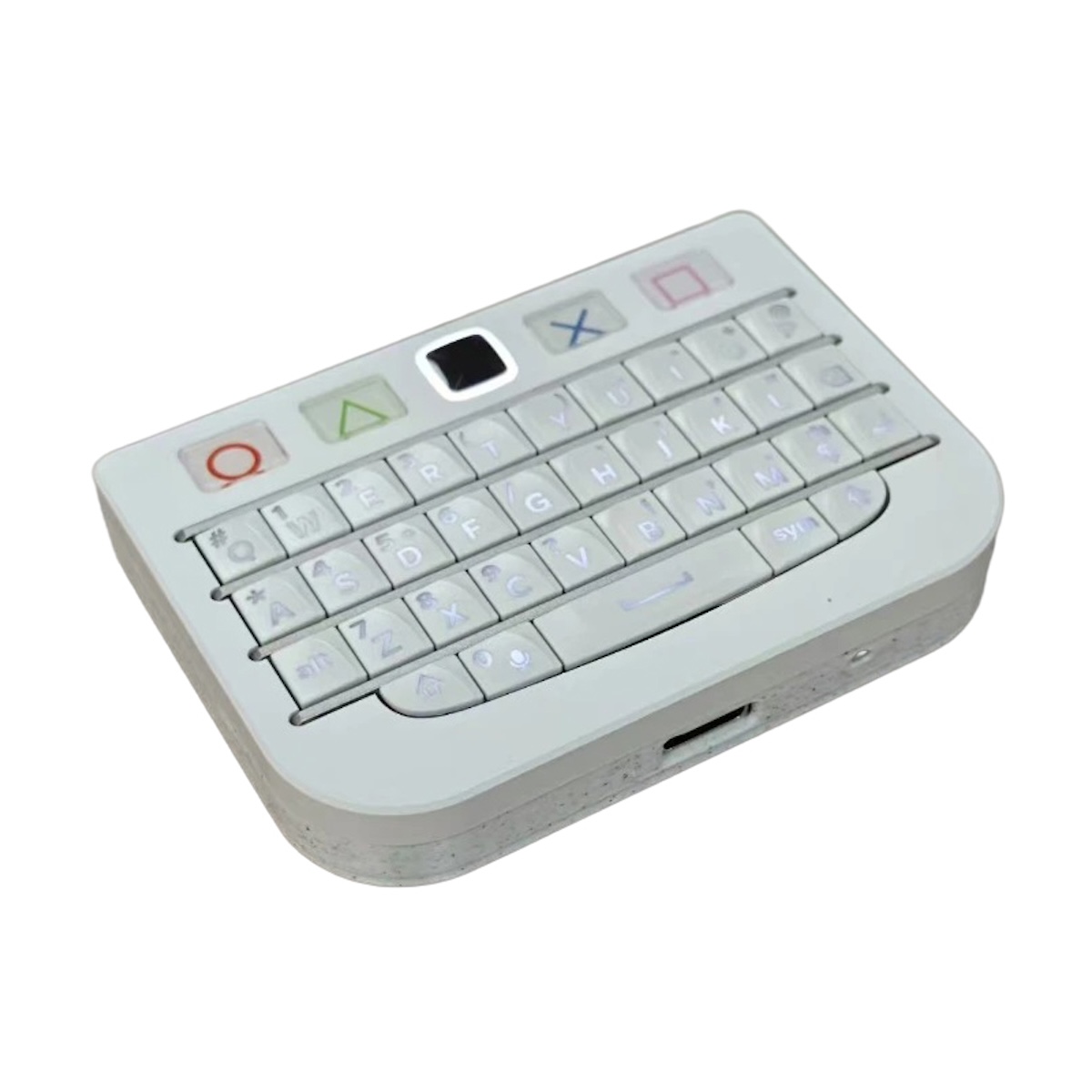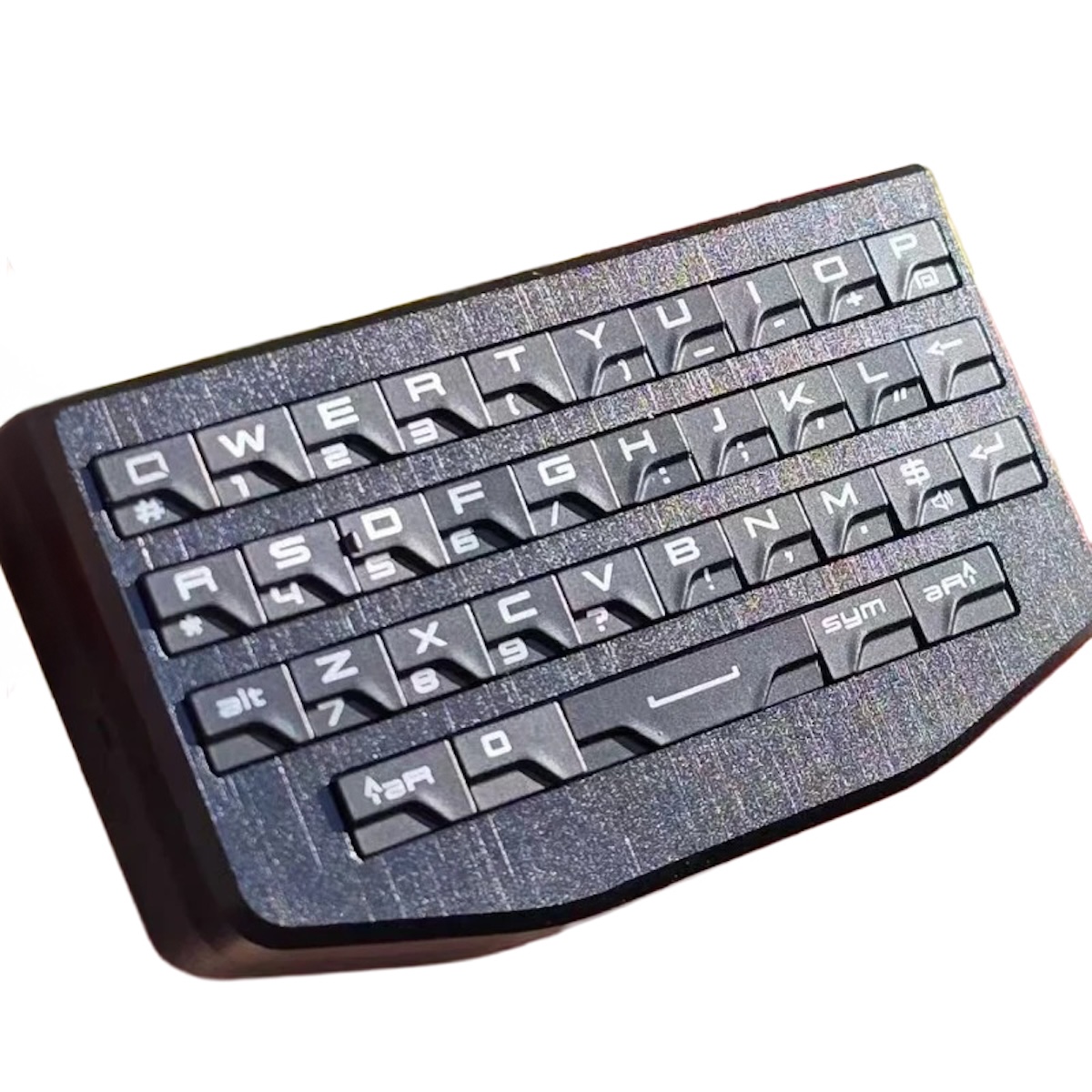 往年の名機 BlackBerry Q10 / P9981 のキーチップを活用した、超コンパクトなワイヤレス&有線両対応のミニキーボードです。手のひらサイズながら、キーボードとマウス(タッチパッド)の機能を一台に集約しています。