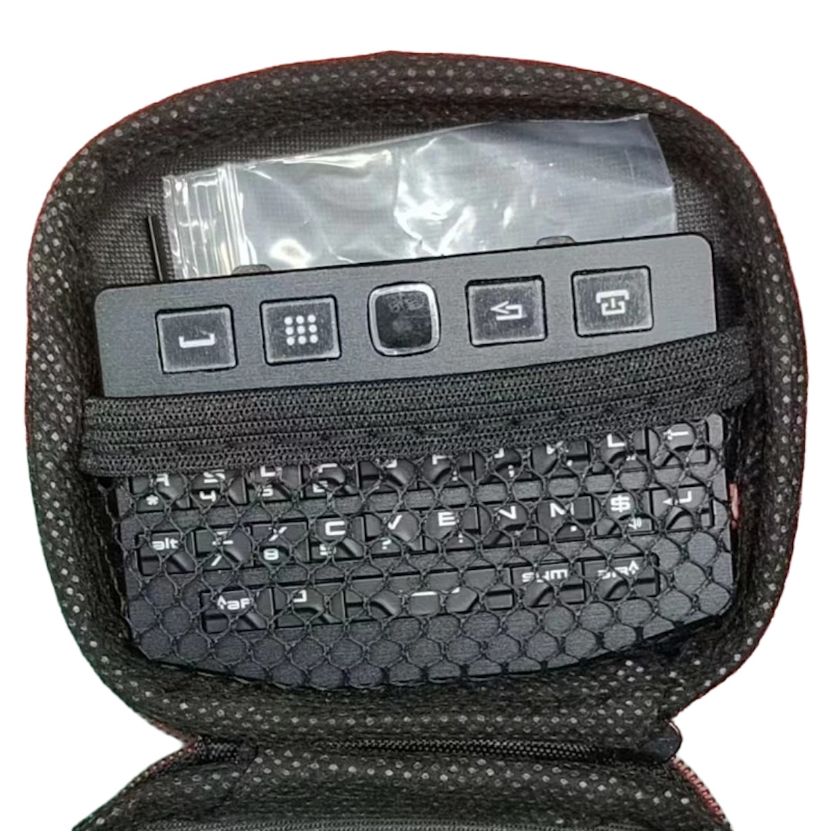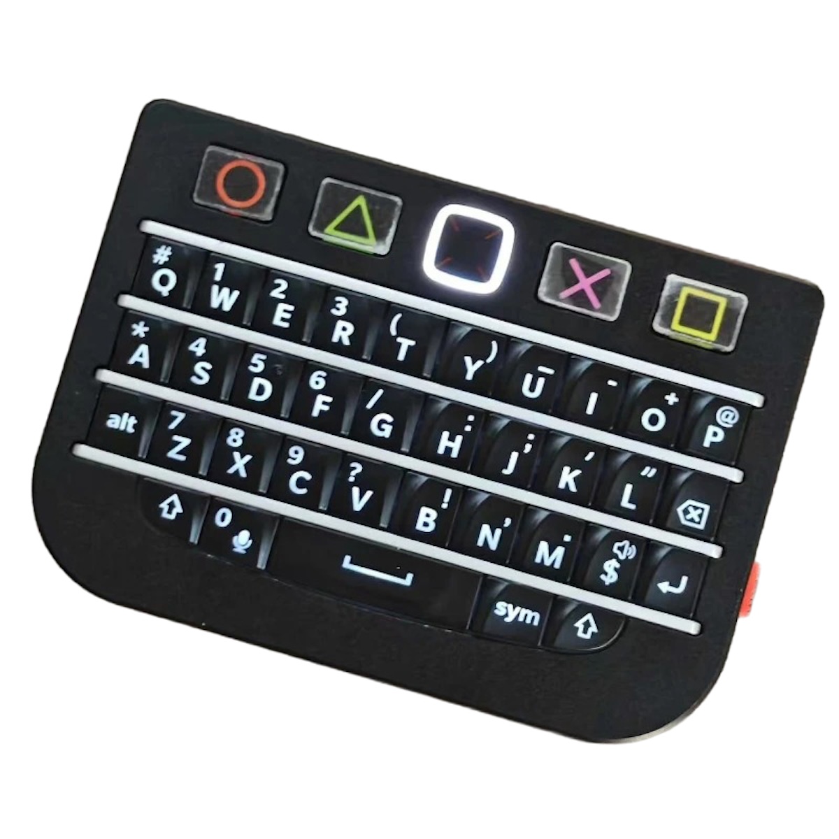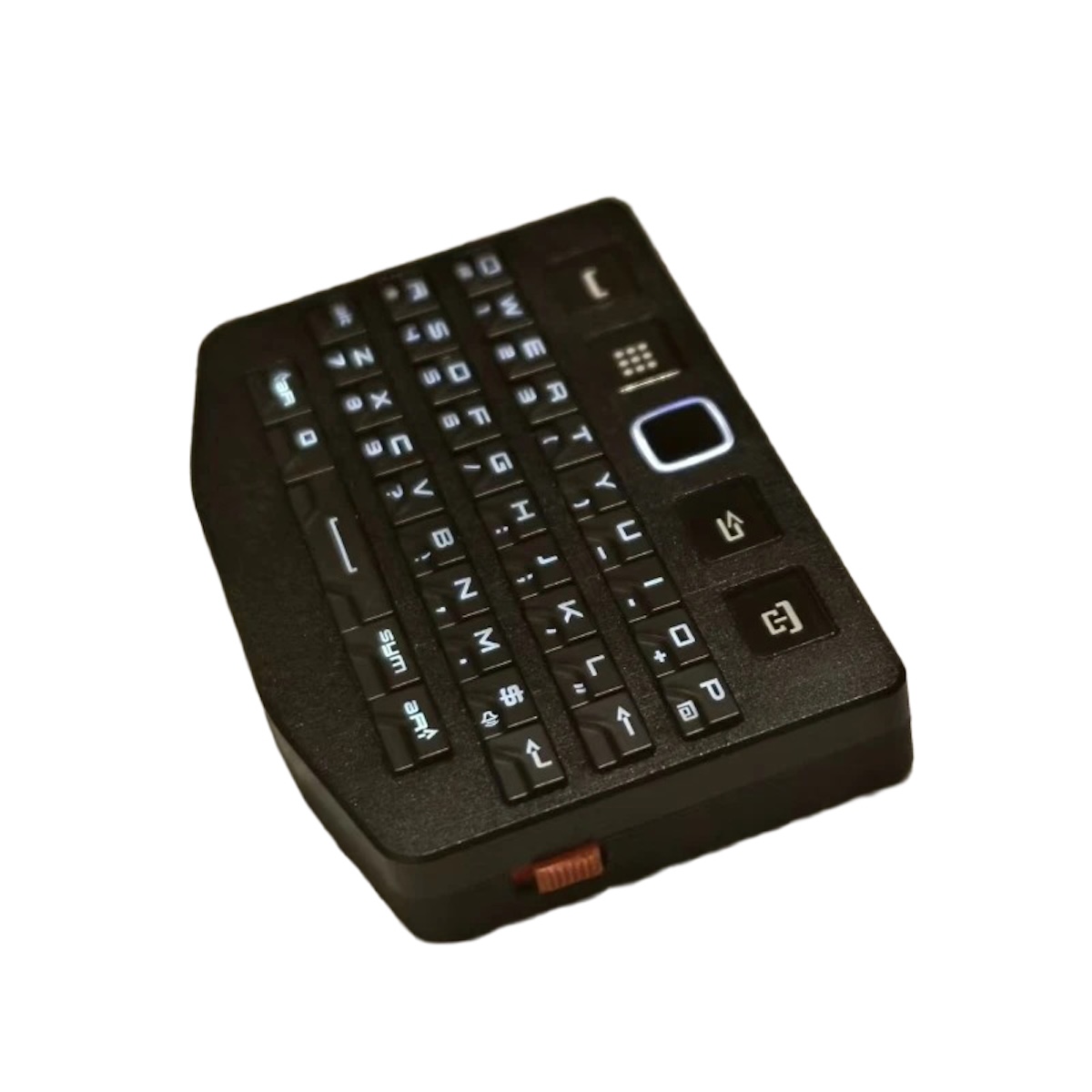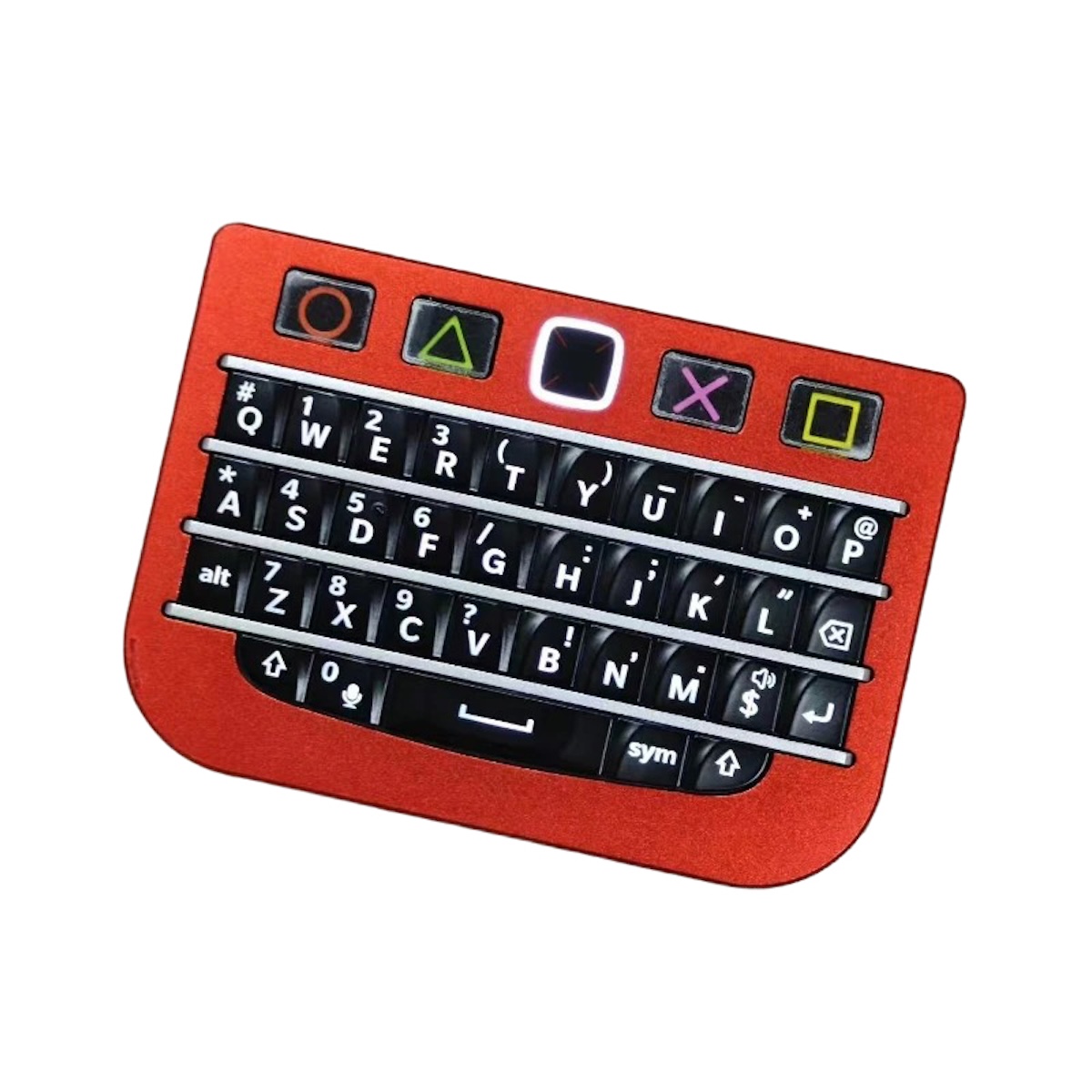 往年の名機 BlackBerry Q10 / P9981 のキーチップを活用した、超コンパクトなワイヤレス&有線両対応のミニキーボードです。手のひらサイズながら、キーボードとマウス(タッチパッド)の機能を一台に集約しています。