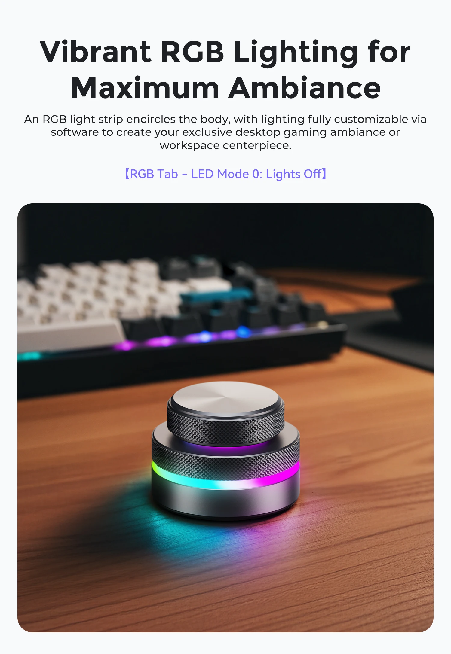 ノブの周囲に鮮やかなカスタムRGBライティングを搭載。作業環境に合わせた雰囲気を作り出し、デスク周りを彩ります。