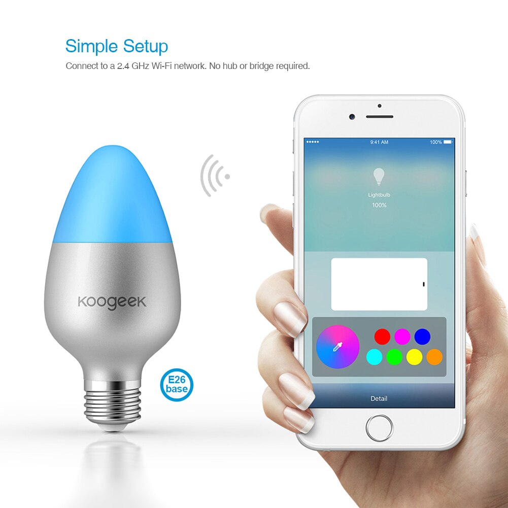 Koogeek Appleホームキット Siri 対応 Wi-Fi 8W 1600万色 スマート LED電球 E26