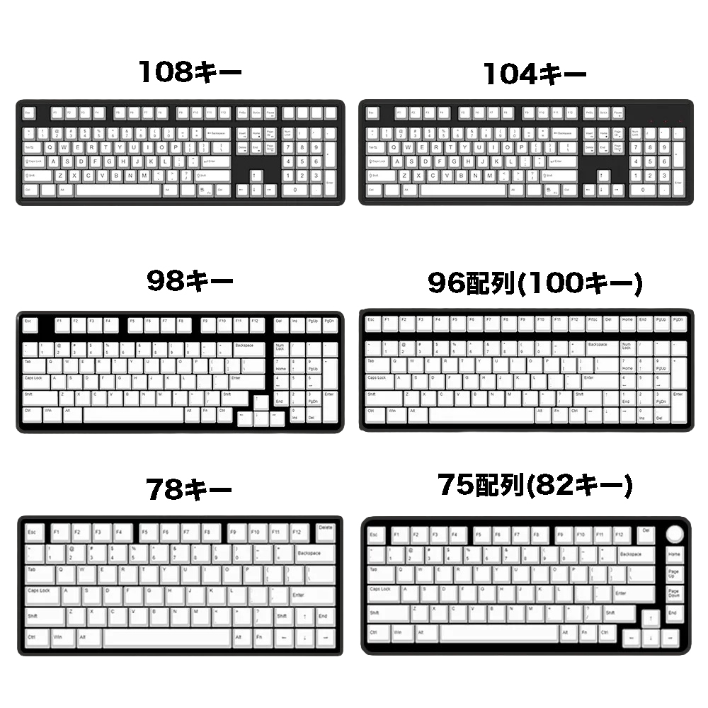 74キーまたは135キーのセット構成が選べ、様々なサイズのキーボードに対応します。
